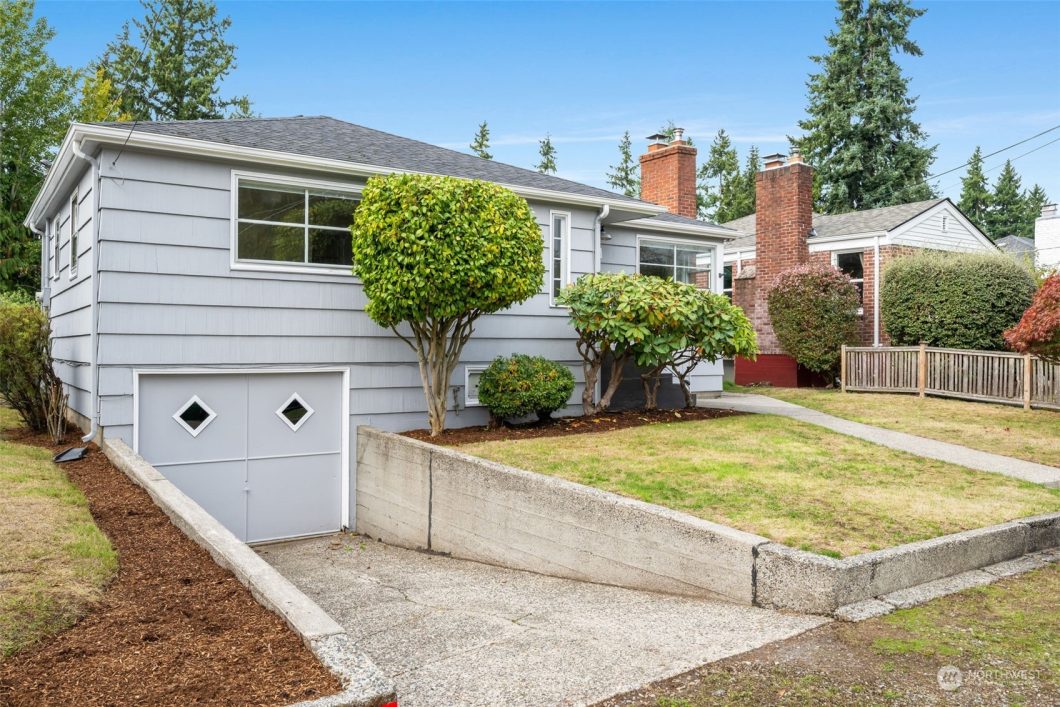 Cute-as-a-button home on a peaceful dead-end street in coveted Broadview with a private “country-style” lot. Step inside to a spacious living room w/ inviting fireplace, big picture windows & original hardwood floors. The living room flows to a dining room with French doors and the gorgeous kitchen w/ new appliances, quartz counters, tile floors & backsplash. Off the kitchen is an expansive fully-fenced backyard with a covered deck for al fresco dining, gardening and Fido to play. Two bedrooms & full updated bath complete the main. Downstairs: media room/office plus a bedroom. Updated plumbing, gas furnace, A/C, newly painted exterior, attached garage + driveway. Minutes to restaurants, parks, I-5, light rail, Ballard, Northgate, & more!