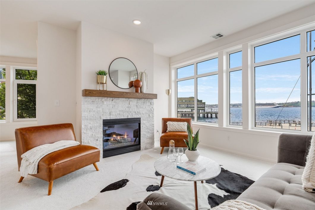 Live the ultimate Seattle waterfront lifestyle in this remodeled SW corner unit with sweeping unobstructed views. Step inside to a wall of windows framing the Sound, mountains, iconic ferries & Pier 62. A spacious living area w/cozy gas fireplace & wet bar opens to the updated kitchen w/new appliances incl. gas stove and private view balcony. The primary suite has 2 closets, soaking tub, shower + dual sinks. 2 garage spaces, A/C, 2 walk-in closets, storage unit, pet friendly, no rental cap, short-term rentals allowed. Well-run building w/tons of amenities & 24/7 concierge. Your “front yard” is soon-to-be Seattle’s world-class waterfront with 17 blocks of bike lanes & landscaped pedestrian promenade. Steps to Pike Place, eats, drinks & more.